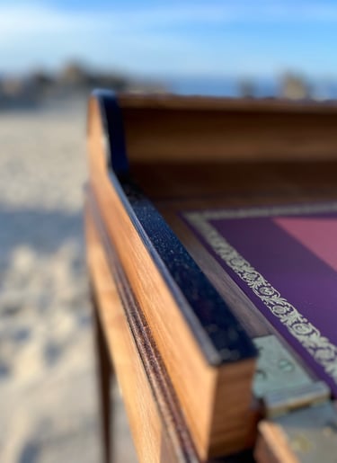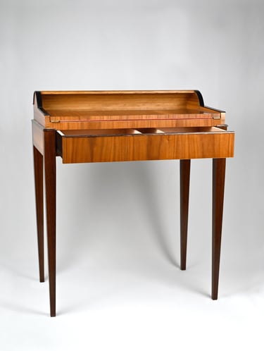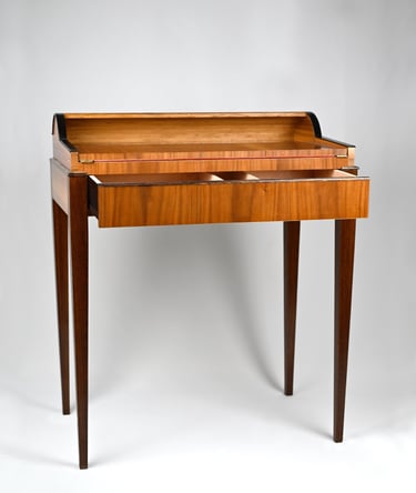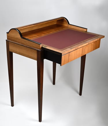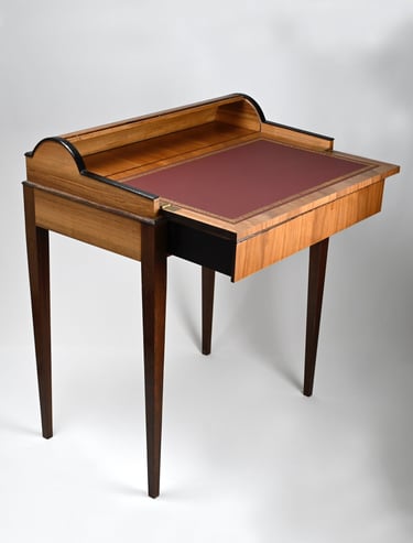 Notre secrétaire est en bois massif sublimé par un plaquage délicat et soigné, inspiré du style Louis XVI. Ce meuble, véritable hommage à l’art du XVIIIe siècle, conserve toute la majesté du mobilier d’époque tout en s’adaptant aux exigences modernes.